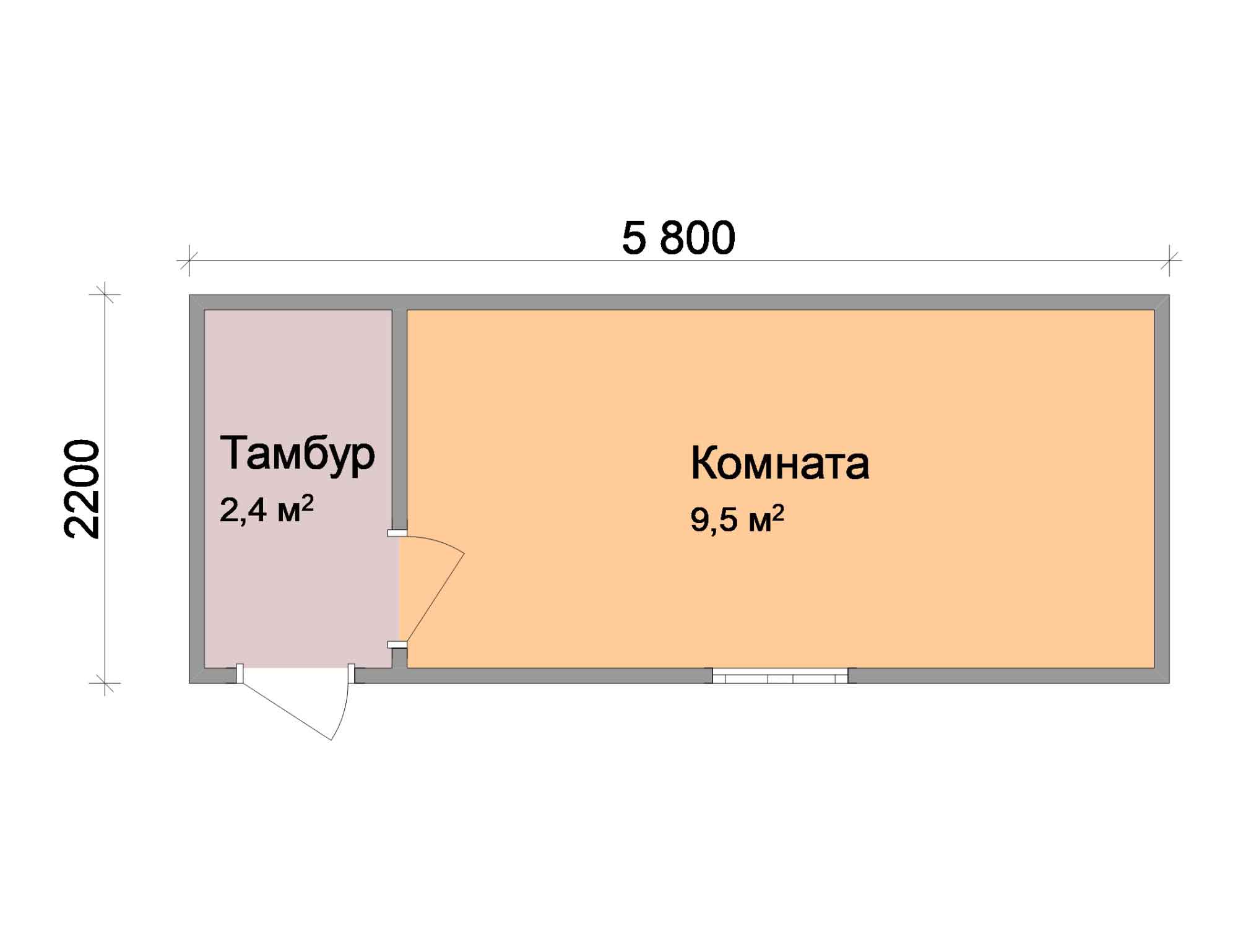 ![]() | Дачная бытовка эконом Флокс - 1 | 5.8x2.2 | 12.76 | ![]() | ДВП-Оргалит: 110 000 | Вагонка дерев.: 119 000 | OSB: 117 000 |