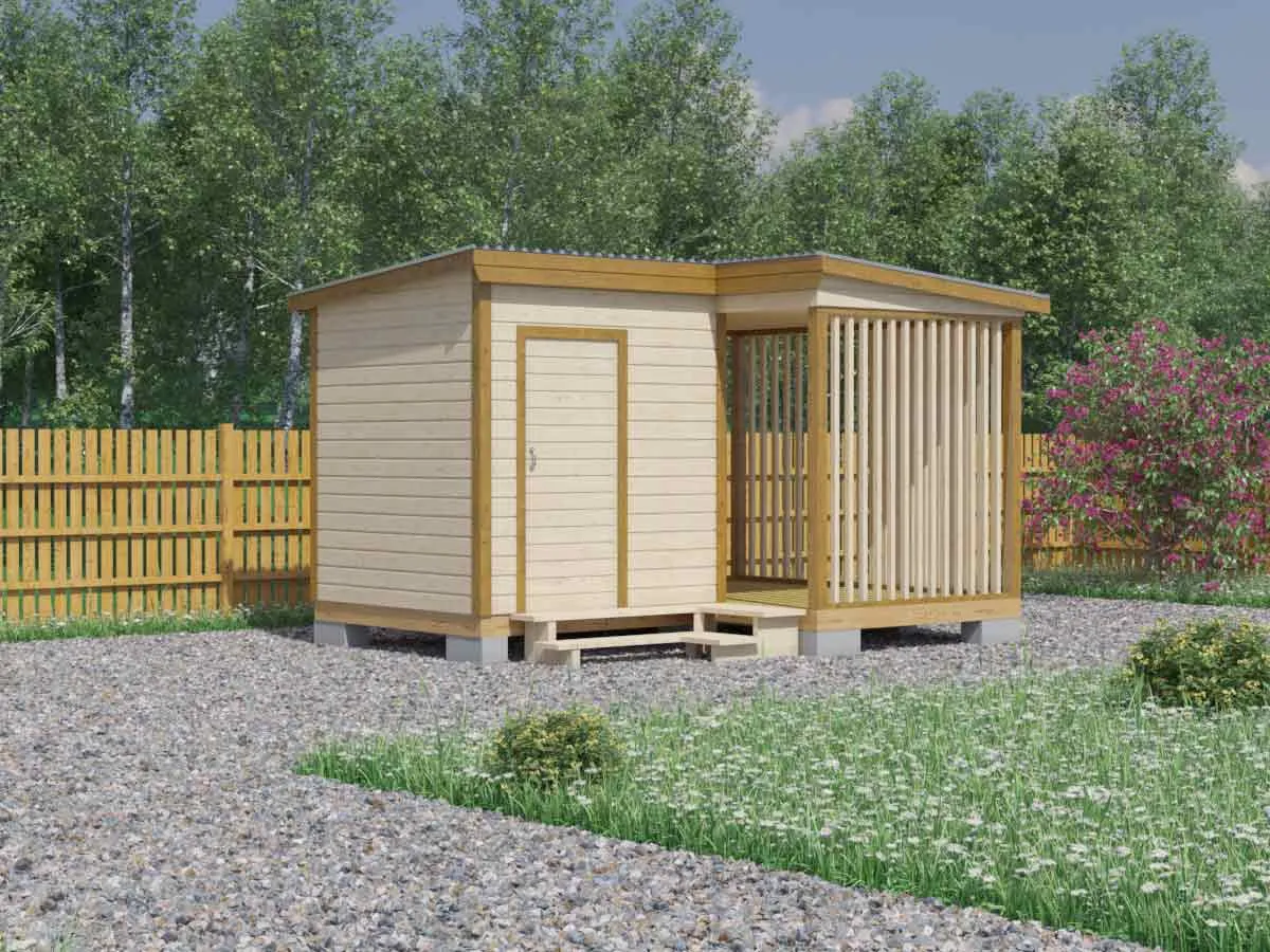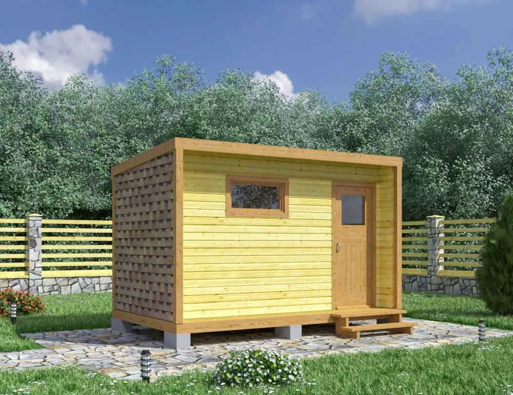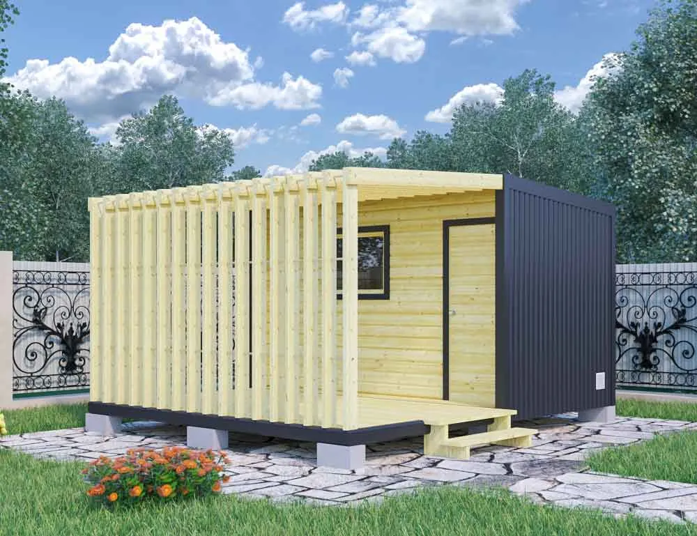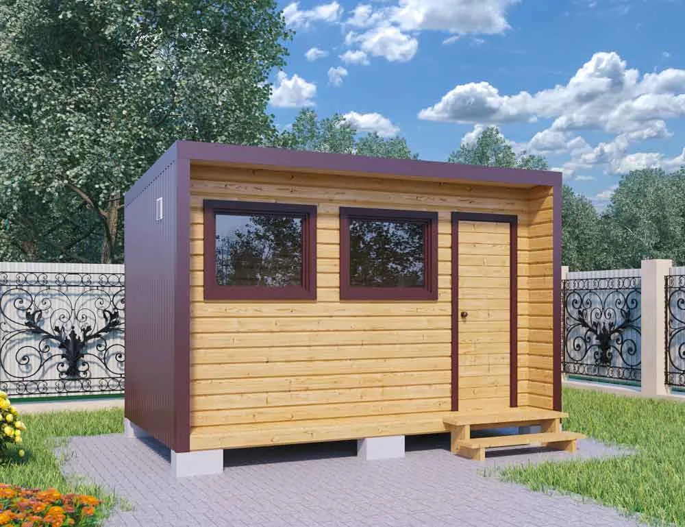 ![]() | Бытовка для дачи в стиле хай-тек с цветным профлистом 3х2.4 | 3х2,4 | 7,2 | ![]() | ДВП-Оргалит: 124 000 | Вагонка дерев.: 132 000 | OSB: 130 500 |