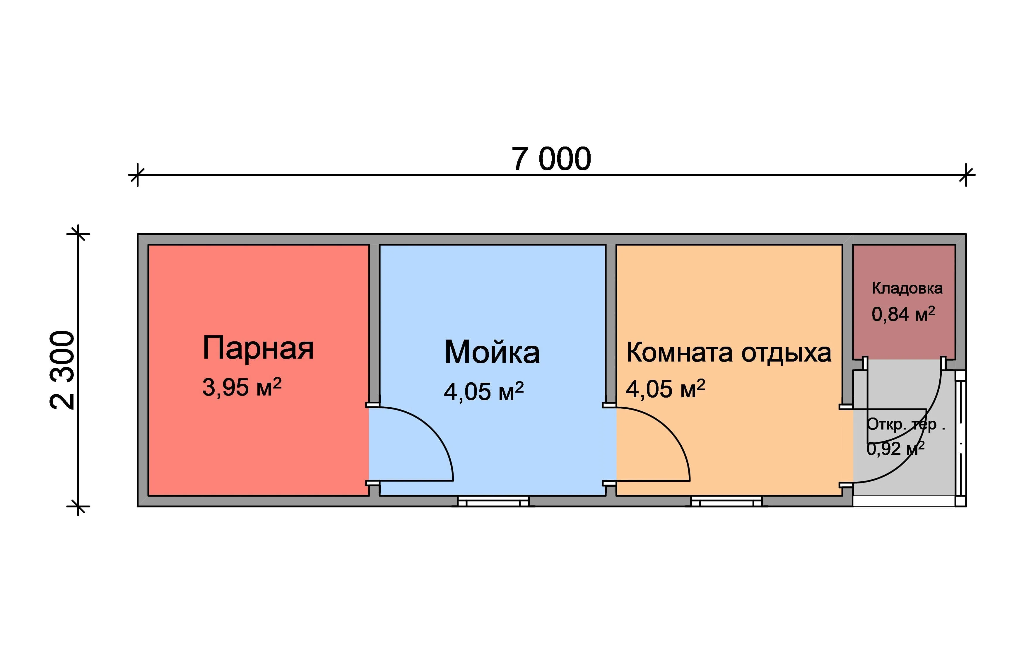![]() | Перевозная баня из бруса 7х2,3 с крыльцом | 7x2.3 | 16.1 | ![]() | Брус 90х140: 417 000 | Брус 140х140: 491 000 | |